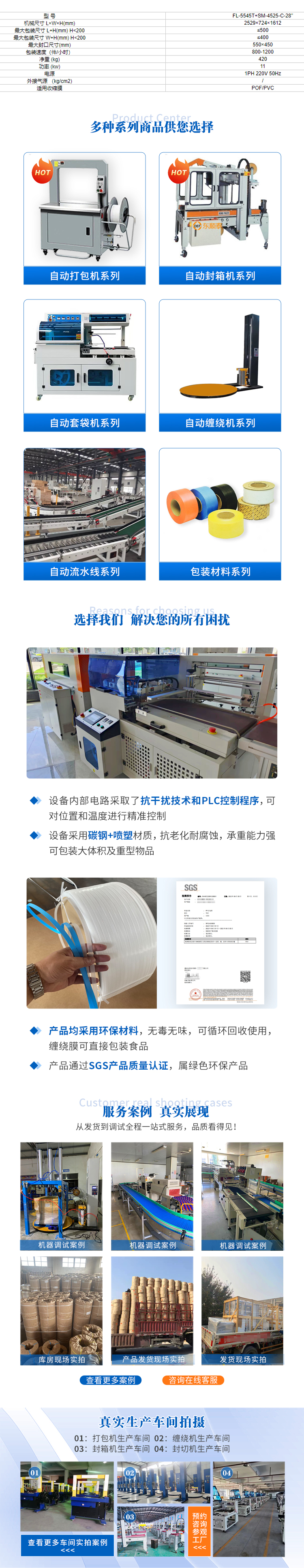 FL-5545TB+SM-4525-C-28”系列设有手动、自动转换功能,自动时可按设定的时间自动运行。整套动作由气缸自动完成,大大减少工作强度并提高生产效率